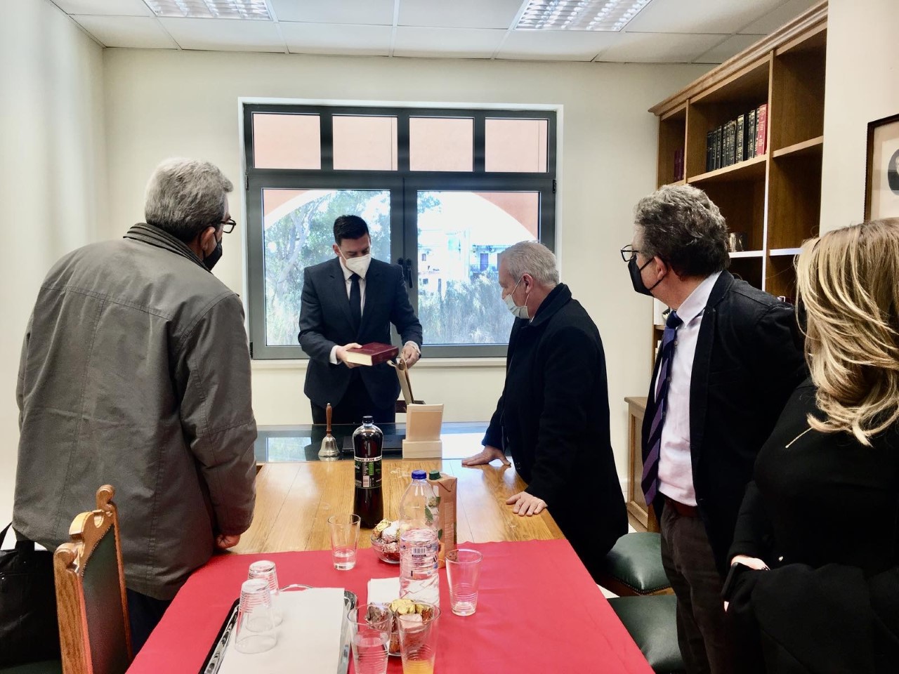 Στη συνέχεια ο κ. Ιορδανίδης απάντησε σε ερωτήσεις μελών του ΔΣ του Δικηγορικού Συλλόγου, ενώ κατά τη λήξη της συνάντησης ο Πρόεδρος κ. Κοντός του δώρισε έναν Ιόνιο Αστικό Κώδικα με σχετική αφιέρωση, εξηγώντας του την ιστορικότητα του και τι αυτός αφορά.