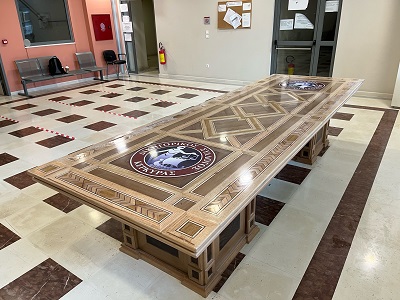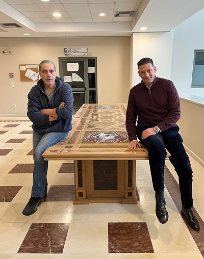 Το Σάββατο που μας πέρασε δεχθήκαμε στο Δικηγορικό Σύλλογο Κέρκυρας μια σημαντική δωρεά, η οποία συνίσταται σε ένα χειροποίητο τραπέζι συνεδριάσεων από μασίφ ξύλο, που φέρει τα σύμβολα του Δικηγορικού Συλλόγου Κέρκυρας. Το τραπέζι αυτό κατασκευάστηκε στην Αθήνα από την την εταιρεία «ART WOOD DE CORFU», την οποίαν και ευχαριστούμε, όπως και τον εκπρόσωπο της κ. Γιώργο Κοκονέτση. Η εργασία κράτησε μήνες, η δε δωρεά αυτή, ήδη κοσμεί τους χώρους του ΔΣΚ, συγκεκριμένα την τοποθετήσαμε στον προθάλαμο του 1ου ορόφου του Δικαστικού Μεγάρου.