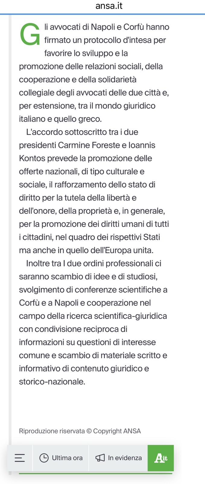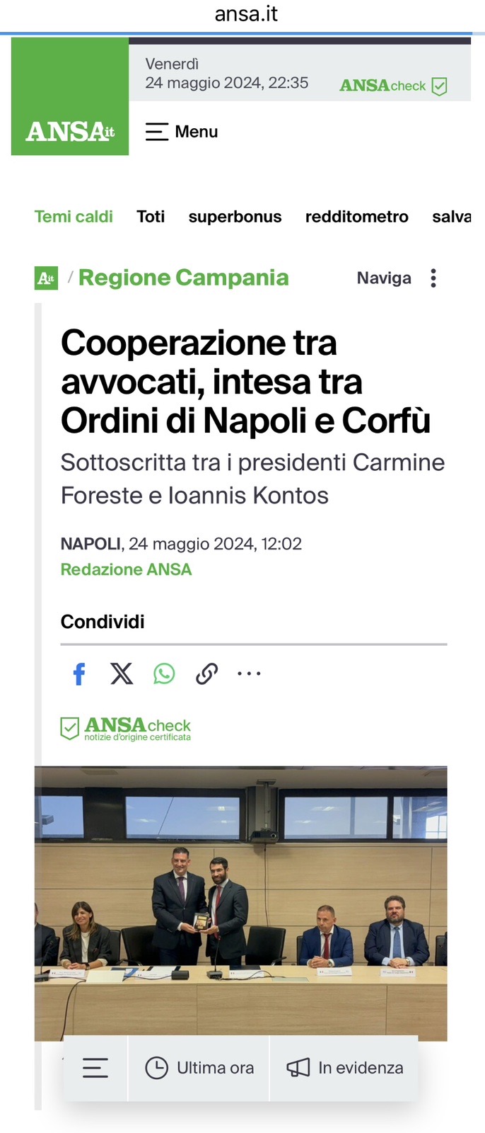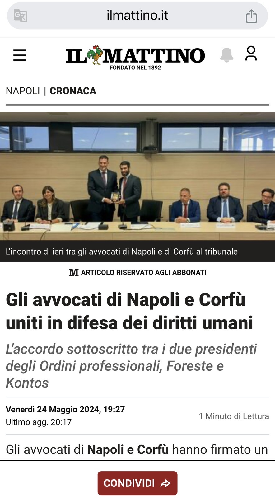 Η ΑΔΕΛΦΟΠΟΙΗΣΗ ΤΟΥ Δ.Σ.Κ. ΚΑΙ ΤΟΥ Δ.Σ. ΤΗΣ NAPOLI, ΣΕ ΔΥΟ ΑΠΟ ΤΑ ΠΙΟ ΕΓΚΥΡΑ ΕΘΝΙΚΑ ΜΜΕ ΤΗΣ ΙΤΑΛΙΑΣ «IL MATTINO» & «ANSA»
